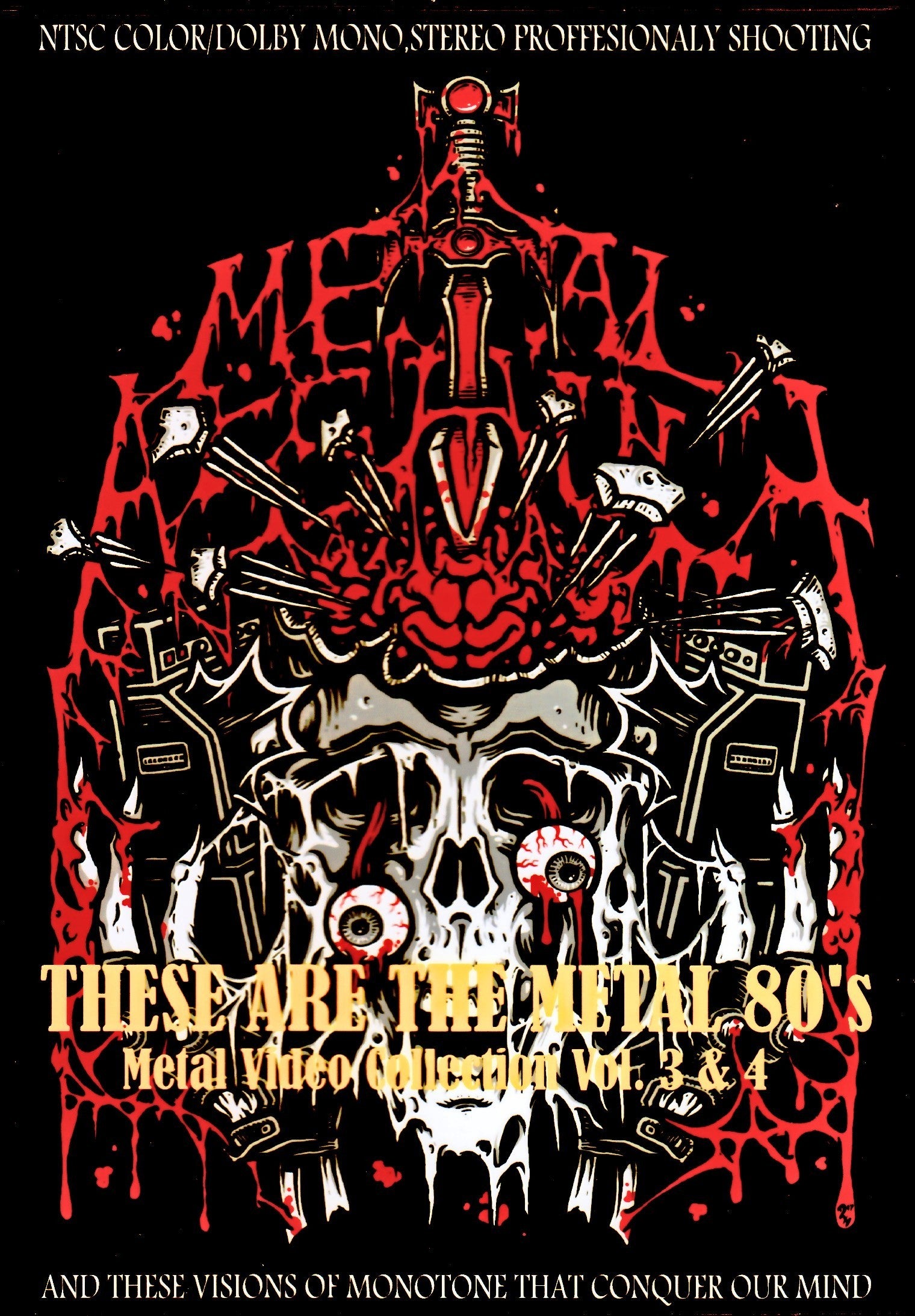An omnibus collection of heavy metal and hard rock bands that were hugely popular in the 1980s. etc. are recorded. The music video for Goin' Crazy, created by David Lee Roth and featuring the likes of Steve Vai, Billy Sheen, and Greg Bissonnette, was controversial due to its ridiculousness. ``Shot in the Woman'' by Sex Pistols guitarist Steve Jones; co-produced by Andy Taylor-Don't Let Me Die Young, VOW WOW's ``Shot in the ``dark'' is the same as it is, but Ozzy Osbourne's Japanese title is ``Shot in the Dark,'' which is unconvincing. Menu chapter specifications. Metal Video Collection (52 Videos) Vol. 3 & 4 DVD 1 AC/DC-Heat Seeker Aerosmith-Angel Billy Squire-Everybody Wants You Blue Oyster Cult-Joan Crawford Cinderella-Don't Know What You Got Deep Purple-Knocking On Your Back Door Def Leppard-Love Bites Dio-Last In Line Dokken-Burning Like A Flame Faster Pussycat-Bathroom Wall House Of Lords-I Wanna Be Loved Judas Priest-You Got Another Thing Coming Keel-Because The Night Kiss-Thrills In The Night Kix-Don't Close Your Eyes Krokus-Screaming In The Night Ozzy Osbourne-Shot In The Dark Poison-Fallen Angel Quiet Riot-Bang Your Head Rose Tattoo-Branded Scorpions-Rock You Like A Hurricane Skid Row-18 And Life Twisted Sister -I Wanna Rock Van Halen-Dreams Warlock-Fight For Rock White Lion-Wait DVD 2 Aerosmith-Sweet Emotion (Concept) Andy Taylor-Don't Let Me Die Young Anthrax-Anti-Social Billy Squire-Rock Me Tonight David Lee Roth -Goin' Crazy Def Leppard-Bringin' On The Heartbreak Dio-Rainbow In The Dark Dokken-Burning Like A Flame Enuff Z 'Nuff-Fly High Michelle Hear N Aid-We're Stars Iron Maiden-Flight Of The Icarus Kiss-God Gave Rock & Roll To You Motley Crue-Same Ol' Situation Night Ranger-Don't Tell Me You Love Me Poison-Unskinny Bop Queensryche-Queen Of The Reich Ratt-Slip Of The Lip Raven-On And On Rolling Stones-Between A Rock Rush-Tom Sawyer Sammy Hagar-I Can't Drive 55 Scorpions-Still Loving You Stan Bush-The Touch Uriah Heep-That's The Way It Is Van Halen-Pretty Woman Warrant-Down Boys ZZ Top-Stages DVDFormat: NTSC Source: Professional-Shot (Multi-Camera) Video Quality: Rating: 8.5 Menus: Yes Chapter Selection: Yes Total Running Time: