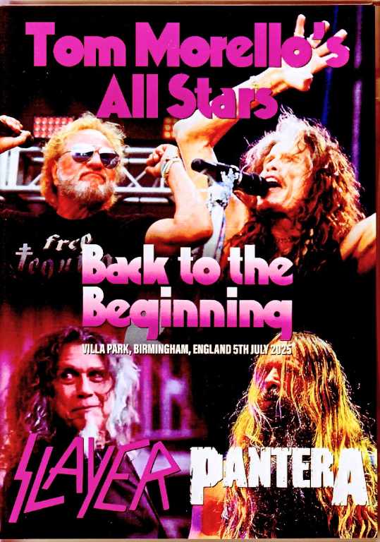 Live at Villa Park, Birmingham, England 5th July 2025 : PRO-SHOT COLOUR NTSC Approx.185min DISC 1 : (TRIBUTE PERFORMANCES) 1. Supernaut / MASTODON 2. Electric Funeral / RIVAL SONS 3. Into The Void / ANTHRAX 4. Perry Mason / HALESTORM 5. Children Of The Grave / LAMB OF GOD 6. Fairies Wear Boots / ALICE IN CHAINS 7. Under The Sun / GOJIRA 8. Hand Of Doom / TOOL (PANTERA) 9. Intro 10. Cowboys From Hell 11. Walk 12. Planet Caravan 13. Electric Funeral (SLAYER) 14. Intro 15. Disciple 16. War Ensemble 17. Wicked World 18. South Of Heaven/Wicked World 19. Raining Blood 20. Angel Of Death DISC 2 : -TOM MORELLO'S ALL STARS- 1. Intro 2. Ultimate Sin (Lzzy Hale, Jake E. Lee, David Ellefson, Adam Wakeman, Nuno Bettencourt & Mike Bordin) 3. Shot in the Dark (David Draiman, Jake E. Lee, David Ellefson, Adam Wakeman, Nuno Bettencourt & Mike Bordin) 4. Sweet Leaf (David Draiman, Scott Ian, David Ellefson, Adam Wakeman, Nuno Bettencourt & Mike Bordin) 5. Believer (Whitfield Crane, Scott Ian, Frank Bello, Sleep Token II & Adam Wakeman) 6. Changes (YUNGBLUD, Nuno Bettencourt, Frank Bellow, Sleep Token II & Adam Wakeman) -JACK BLACK- 7. Mr. Crowley (Featuring Roman Morello, Revel Ian & Hugo Weiss) -DRUM OFF- 8. Intro 9. Symptom Of The Universe (Travis Barker, Chad Smith, Danny Carey with Tom Morello, Nuno Bettencourt & Rudy Sarzo) -TOM MORELLO'S ALL STARS- 10. Intro 11. Breaking the Law (Billy Corgan, Tom Morello, Adam Jones, K.K. Downing, Rudy Sarzo & Danny Carey) 12. Snowblind (Billy Corgan, Tom Morello, Adam Jones, K.K. Downing, Rudy Sarzo & Danny Carey) 13. Flying High Again (Sammy Hagar, Nuno Bettencourt, Vernon Reid, Adam Wakeman, Rudy Sarzo & Chad Smith) 14. Rock Candy (Sammy Hagar, Nuno Bettencourt, Adam Wakeman, Rudy Sarzo, Chad Smith & Tom Morello) 15. Bark at the Moon (Papa V Perpetua, Vernon Reid, Nuno Bettencourt, Adam Wakeman, Rudy Sarzo & Travis Barker) 16. Train Kept A-Rollin' (Steven Tyler, Ronnie Wood, Nuno Bettencourt, Tom Morello, Andrew Watt, Rudy Sarzo & Travis Barker) 17. Walk This Way / Whole Lotta Love (Steven Tyler, Nuno Bettencourt, Tom Morello, Andrew Watt, Rudy Sarzo & Chad Smith) -BONUS FOOTAGE- 18. Backstage
