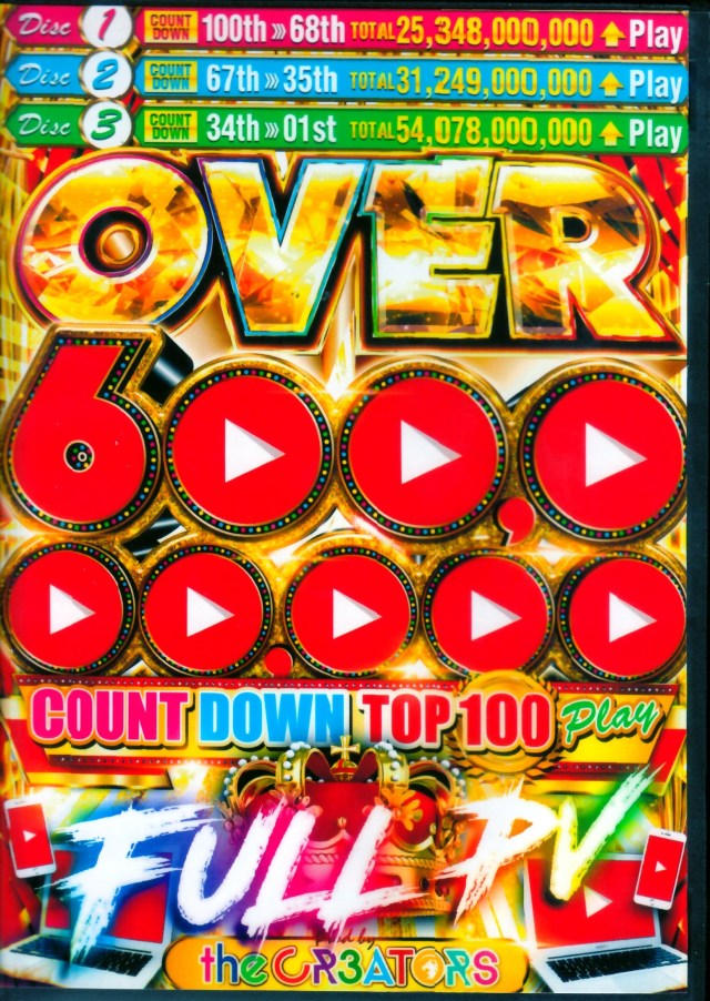 Number of songs = 123 songs Disc 1 [All-time play count 100th to 68th] 01. The Weeknd feat. Daft Punk / Starboy [691,000K PLAY] 02. Omi / Cheerleader (Remix) [694,000K PLAY] 03. Sam Smith / Stay With Me [712,000K PLAY] 04. AronChupa / I'm an Albatraoz [712,000K PLAY] 05. Shawn Mendes / Treat You Better [723,000K PLAY] 06. Justin Bieber feat. Nicki Minaj / Beauty And A Beat [729,000K PLAY] 07. David Guetta feat. Ne-Yo & Akon / Play Hard [732,000K PLAY] 08. Michel Telo / Ai Se Eu Pego [734,000K PLAY] 09. Shawn Mendes / Stitches [735,000K PLAY] 10. Shakira feat. Maluma / Chantaje [738,000K PLAY] 11. Charlie Puth / We Don't Talk Anymore [739,000K PLAY] 12. Miley Cyrus / We Can't Stop [747,000K PLAY] 13. The Weekend / Can't Feel My Face [74 9,000K PLAY] 14. Jason Derulo feat. Snoop Dogg / Wiggle [764,000K PLAY] 15. Pitbull feat. Marc Anthony / Rain Over Me [767,000K PLAY] 16. Sia feat. Sean Paul / Cheap Thrills [775,000K PLAY] 17. J. Batvin feat. Farruko / 6AM [778,000K PLAY] 18. Shakira feat. Rihanna / Can't Remember to Forget You [778,000K PLAY] 19. Sia feat. Shia La Beaaf … / Elastic Heart [778,000K PLAY] 20. Mike Posner / I Took A Pill In Ibiza [782,000K PLAY] 21. Lady Gaga / Bad Romance [789,000K PLAY] . Iggy Azerea feat. Charli / Break Free [797,000K PLAY] 27. Nicky Jam y Enrique Iglesias / El Perdon [799,000K PLAY] 28. Major Lazer feat. Justin Bieber & MO / Cold Water [801,000K PLAY] 29. Ariana Grande / Side To Side [816,000K PLAY] 30. Chino y Nacho feat. Daddy Yankee / Andas En Mi Cab eza [818,000K PLAY] 31. Adele / Someone Like You [827,000K PLAY] 32. One Direction / What Makes You Beautiful [835,000K PLAY] 33. Rihanna feat. Minaj / Bang Bang [849,000K PLAY] 35. Skrillex And Diplo feat. Justin Bieber / Where Are U Now [857,000K PLAY] 36. Daddy Yankee - Shaky Shaky [860,000K PLAY] 37. Gotye feat. Kimbra / Somebody That I Used To Know [865,000K PLAY] 38. Twenty One Pilots / Stressed Out [866 ,000K PLAY】39. Bruno Mars / Just The Way You Are 【867,000K PLAY】40. Katy Perry / Firework 【869,000K PLAY】41. Prince Royce / Darte Un Beso 【870,000K PLAY】42. Don Omar feat. Lucenzo / Danza Kuduro 【872,000K PLAY】 43. Miley Cyrus / Wrecking Ball [874,000K PLAY] 44. Katy Perry / Last Friday Night [876,000K PLAY] 45. Joey Montana / Picky [893,000K PLAY] 46. Eminem / Not Afraid [903,000K PLAY] 47. Ke$ha feat. Pitbull / Timber [907,000K PLAY] 48. Carly Rae Jepsen / Call Me Maybe [928,000K PLAY] 49. Pharrell Williams / Happy [929,000K PLAY] 50. Alan Walker / Faded [948,000K PLAY] 51. Martin Garrix / Animals [955,000K PLAY] 52. Rihanna / Diamonds [957,000K PLAY] 53. Ariana Grande / Problem [961,000K PLAY] 54. Calvin Harris / How Deep Is Your Love [982,000K PLAY] 55. Nicky Jam / Hasta el Amanecer [994,000K PLAY] 56. David Guetta feat. Nicki Minaj [1,004,000K PLAY] 57. Demi Lovato / Let It Go [1,008,000K PLAY] 58. The Weekend / The Hills [1,015,000K PLAY] 59. Taylor Swift feat. Kendrick Lamar / Bad Blood [1,024,000K PLAY] 60. Macklemore / Thrift Shop [1,032,000K PLAY] 61. Jennifer Lopez / On The Floor [1,036,000K PLAY] 62. PSY / Gentleman [1,041,000K PLAY] 63. John Legend / All Of Me [1,046,000K PLAY] 64. Bruno Mars / The Lazy Song [1,053,000K PLAY] 65. Ellie Goulding / Burn [1,054,000K PLAY] 66. Adele / Rolling In The Deep [1,055,000K PLAY] Disc 3 [History] 34 to 1st] 67. Calvin Harris / Summer [1,064,000K PLAY] 68. Justin Bieber / Love Yourself [1,082,000K PLAY] 69. J. Balvin / Ay Vamos [1,144,000K PLAY] 70. Drake / Hotline [1,144,000K PLAY] 71. MAGIC! / Rude [1,190,000K PLAY] 72. The Chainsmokers / Closer [1,208,000K PLAY] 73. Silento / Watch Me [1,217,000K PLAY] 74. Avicii / Wake Me Up [1,235,000K PLAY] 75. LMFAO / Party Rock Anthem [1,248,000K PLAY] 76. feat. Rihanna / Love The Way You Lie [1,259,000K PLAY] 77. Fifth Harmony / Worth It [1,313,000K PLAY] 78. Calvin Harris feat. Rihanna / This Is What You Came For [1,319,000K PLAY] 79. Shakira / Waka Waka [1,323,000K PLAY] 80. Passenger / Let Her Go [1,338,000K PLAY] 81. Ellie Goulding / Love Me Like You Do [1,385,000K PLAY] 82. Fifth Harmony / Work From Home [1,389,000K PLAY] 83. Ed Sheeran / Thinking Out Loud [1,509,000K PLAY] 84. Justin Bieber / What Do You Mean [1,519,000K PL AY】85. Sia / Chandelier 【1,538,000K PLAY】86. Justin Bieber / Baby 【1,555,000K PLAY】87. OneRepablic / Counting Stars 【1,672,000K PLAY】 88. Katy Perry / Dark Horse 【1,723,000K PLAY】89. Meghan Trainor / All About That Bass [1,765,000K PLAY] 90. Maroon 5 / Sugar [1,789,000K PLAY] 91. Katy Perry / Roar [1,814,000K PLAY] 92. Adele / Hello [1,888,000K PLAY] 93. Major Lazer / Lean On [1,898,000K PLAY] 94. Enrique Iglesia s / Bailando [1,924,000K PLAY] 95. Taylor Swift / Shake It Off [1,929,000K PLAY] 96. Taylor Swift / Blank Space [1,967,000K PLAY] 97. Mark Ronson / Uptown Funk [2,222,000K PLAY] 98. Justin Bieber / Sorry [2,275,000K PLAY]】99. Wiz Khalifa / See You Again 【2,463,000K PLAY】 100. PSY / Gangnam Style 【2,771,000K PLAY】