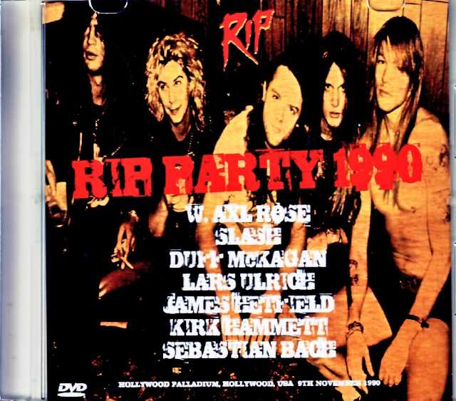 Live at Hollywood Palladium, Hollywood, USA 9th November 1990 At the party for 'Rip Magazine' band members of 'Guns and Roses' W. Axl Rose Slash, Duff, Sebastian Bach performed together with Lars Ulrich, James Hetfield and Kirk Hammett as 'Gak' 1. Introduction 2. You're Crazy (Sebastian Bach, Slash, Duff Mckagan & Lars Ulrich) 3. For Whom the Bell Tolls (Sebastian Bach, Slash, Duff Mckagan & Lars Ulrich) 4. Piece of Me (Axl Rose, Slash, Duff Mckagan & Lars Ulrich) 5. Hair of the Dog (Axl Rose, Sebastian Bach, Slash, Duff Mckagan & Lars Ulrich) 6. Whiplash #1 (James Hetfield, Sebastian Bach, Kirk Hammett, Slash, Duff Mckagan & Lars Ulrich) 7. Whiplash #2 (James Hetfield, Kirk Hammett, Slash, Duff Mckagan, Lars Ulrich & Axl Rose(stage diver!)) Bonus track SKID ROW "Saturday Night Live" American TV Live Show 8. Piece Of Me 9. Kiddie Metal(Comedy Skit) 10. Monkey Business COLOUR NTSC Approx. 40min.