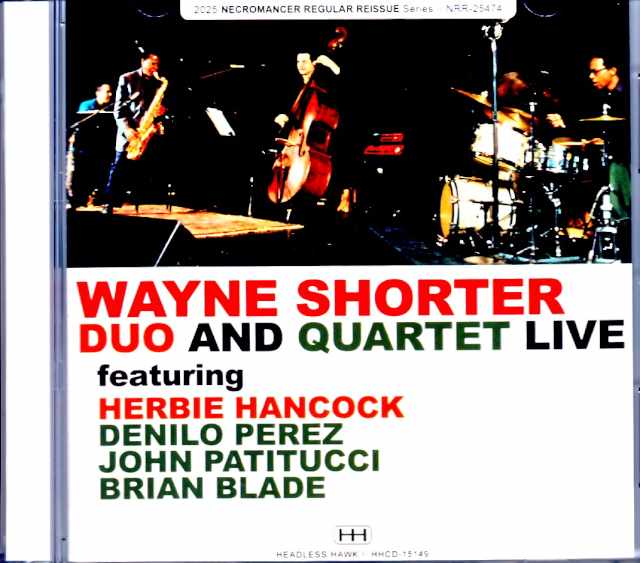 This set features two live performances, one with a duo and one with a quintet, both coupled together using soundboard recordings from FM on-air master recordings. Disc 1 features a 76-minute duo performance with fellow musician Herbie Hancock in Berlin, Germany, on November 8, 1997. The recording features both of their respective repertoires, as well as songs from the Miles Davis era, all performed simply on saxophone and piano. Disc 2 then features a 35-minute digest of their quartet performance at the Montreal Jazz Festival in Canada on June 26, 2003. This release features a full band featuring Danilo Pérez, John Patitucci, and Brian Blade, all of whom were regular members at the time. The creative energy of these exceptional musicians is undeniably captivating, and the relentless improvisation between the band members is a must-listen. DISC 1 : 1. SONRISA 2. AUNG SAN SUU KYI 3. MEMORY OF ENCHANTMENT 4. FOOTPRINTS 5. MAIDEN VOYAGE at Berlin, Germany , November 8th 1997 : Soundboard recording Wayne Shorter - tenor & soprano saxophone / Herbie Hancock - piano DISC 2 : 1. INTERLUDE 2. SMILIN' THROUGH 3. HIGH LIFE 4. ATLANTIS Montreal Jazz Festival : at Theater Maisoneuve, Place Des Arts,Montreal, Canada, June 26th 2003 : Soundboard recording Wayne Shorter - tenor & soprano saxophone / Danilo Perez – piano / John Patitucci – bass / Brian Blade - drums